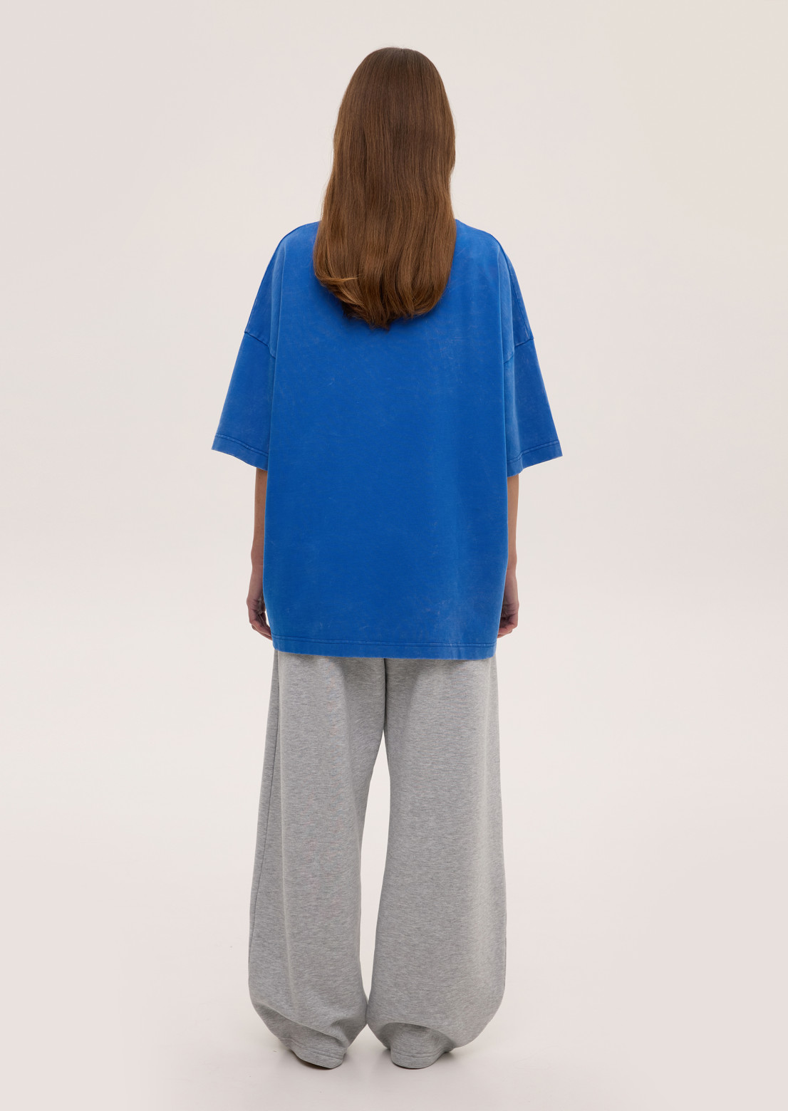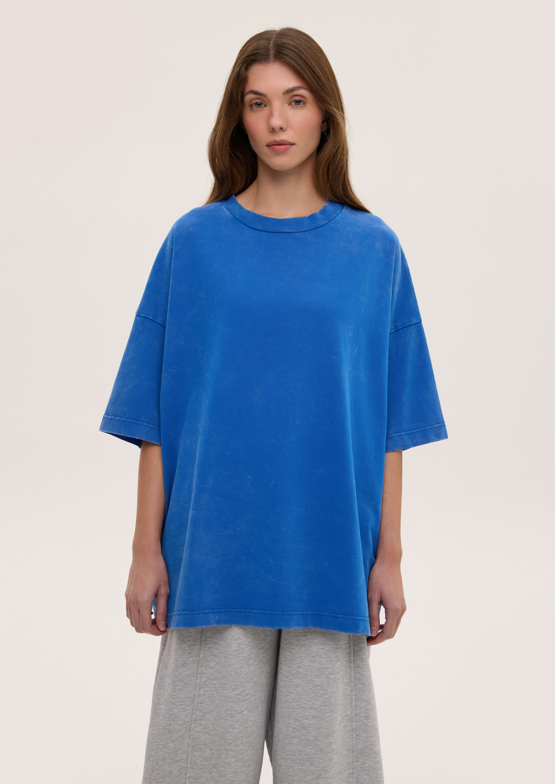 Unisex oversize T-shirt with a "wash" effect in cornflower color by CABANCHI