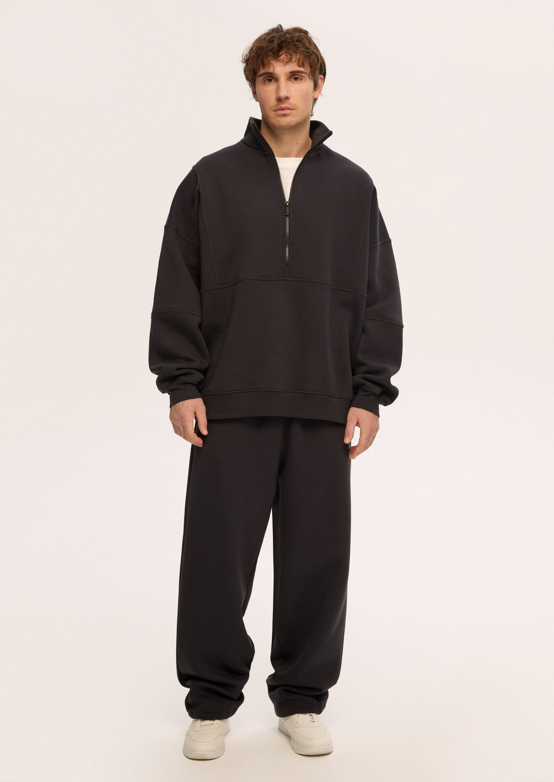 Men's almost black color three-thread insulated trousers with a drawstring by CABANCHI