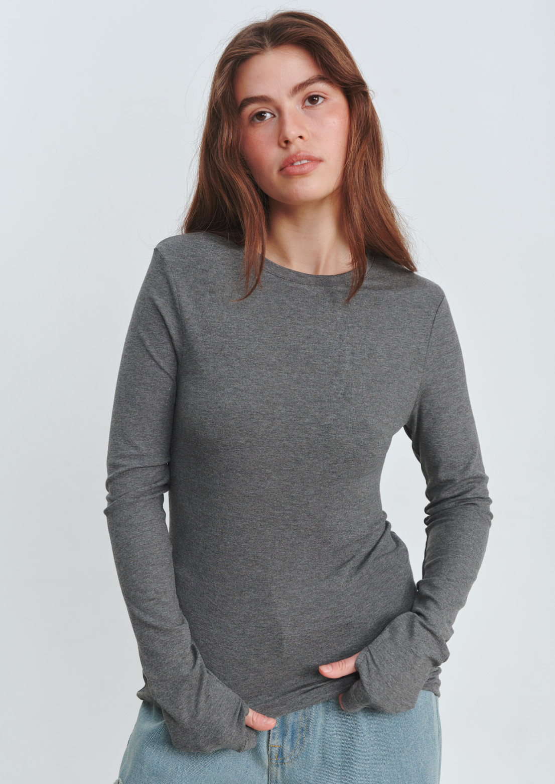 Лонгслів з розрізом для пальця сірий