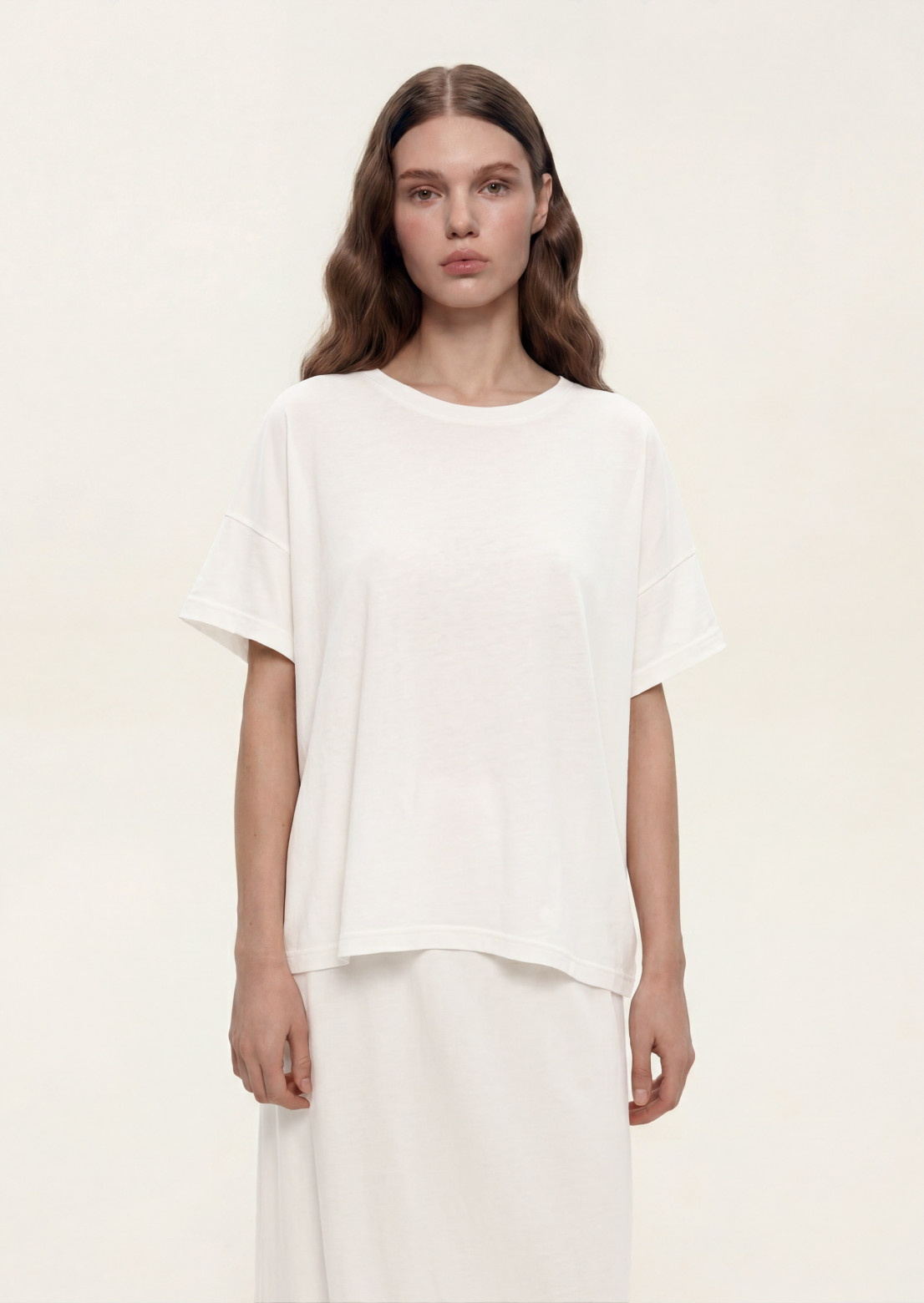 Футболка из джерси свободного силуэта белая Футболка из джерси свободного силуэта белая Футболка из джерси свободного силуэта белая