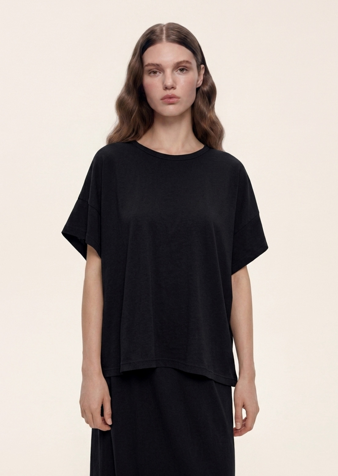Футболка из джерси свободного силуэта черная Футболка из джерси свободного силуэта черная Футболка из джерси свободного силуэта черная