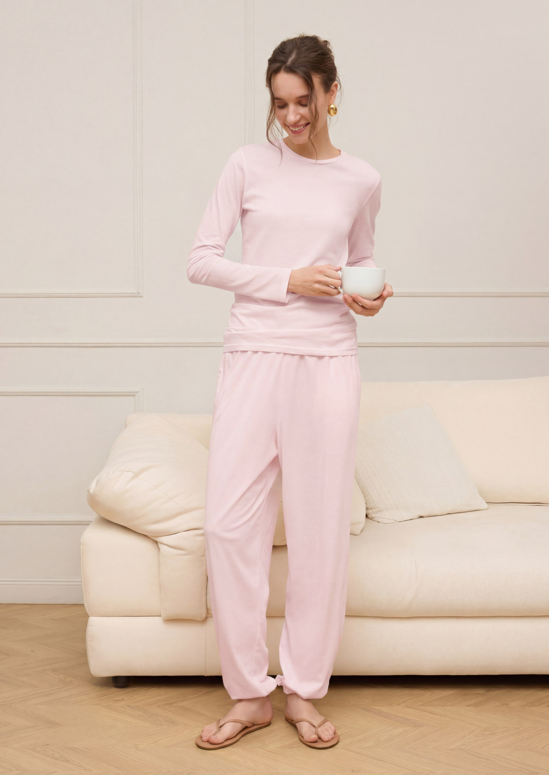 Лонгслив базовый из джерси розовый