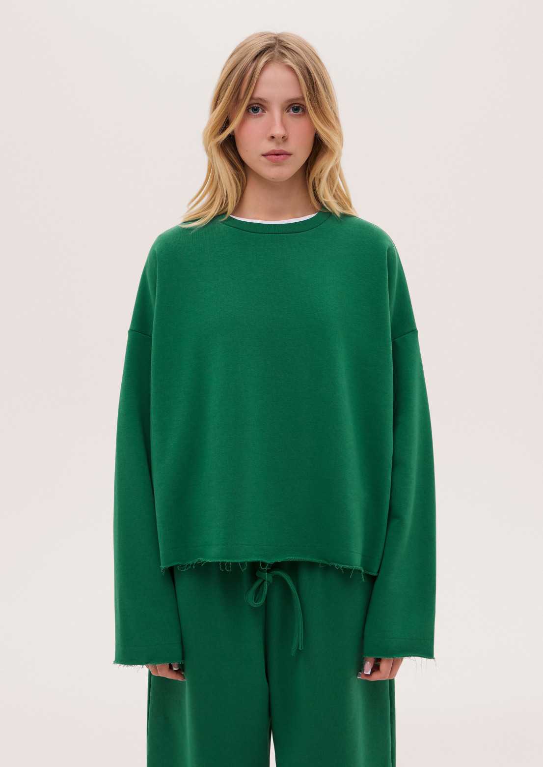 Лонгслив трикотажный (трёхнитка) оверсайз зеленого цвета от CABANCHI