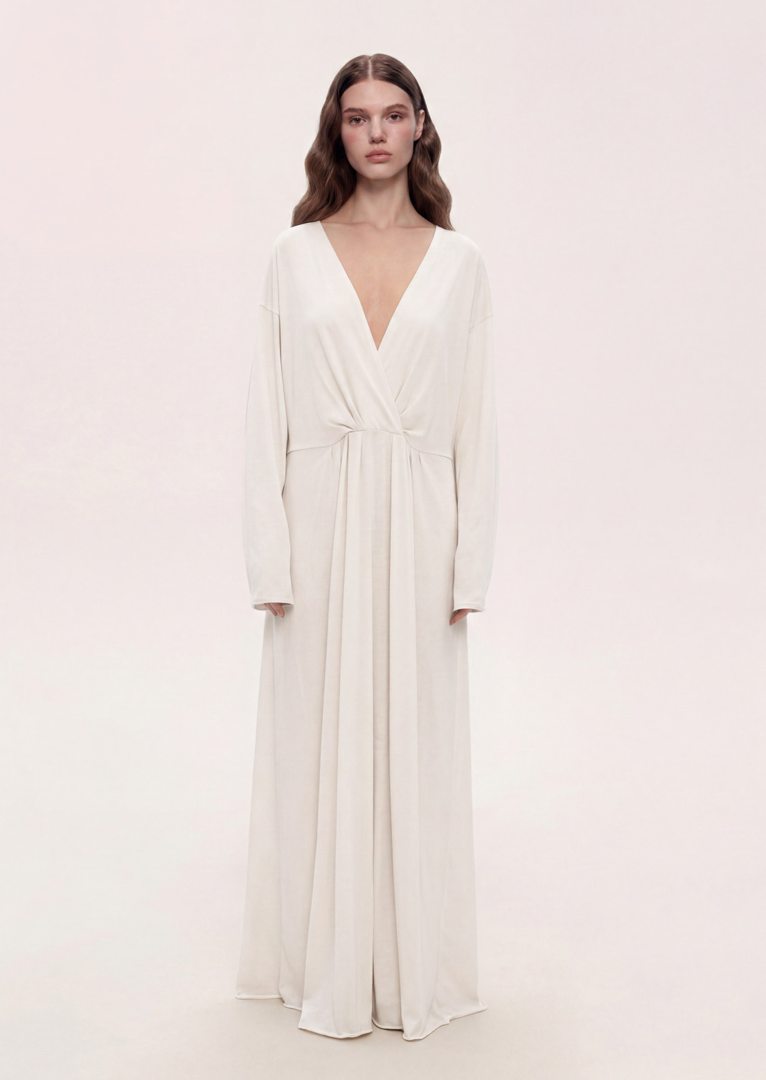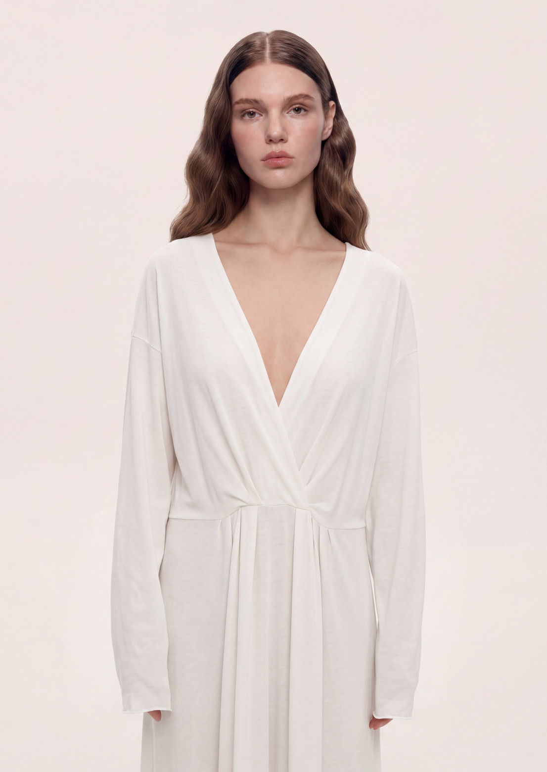 Платье длинное с драпировкой из джерси белое Платье длинное с драпировкой из джерси белое