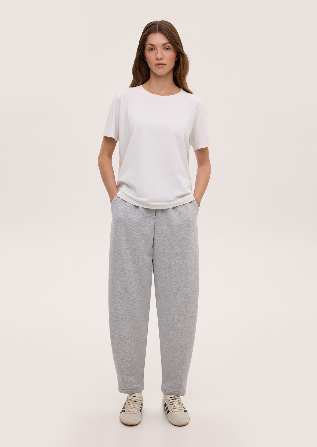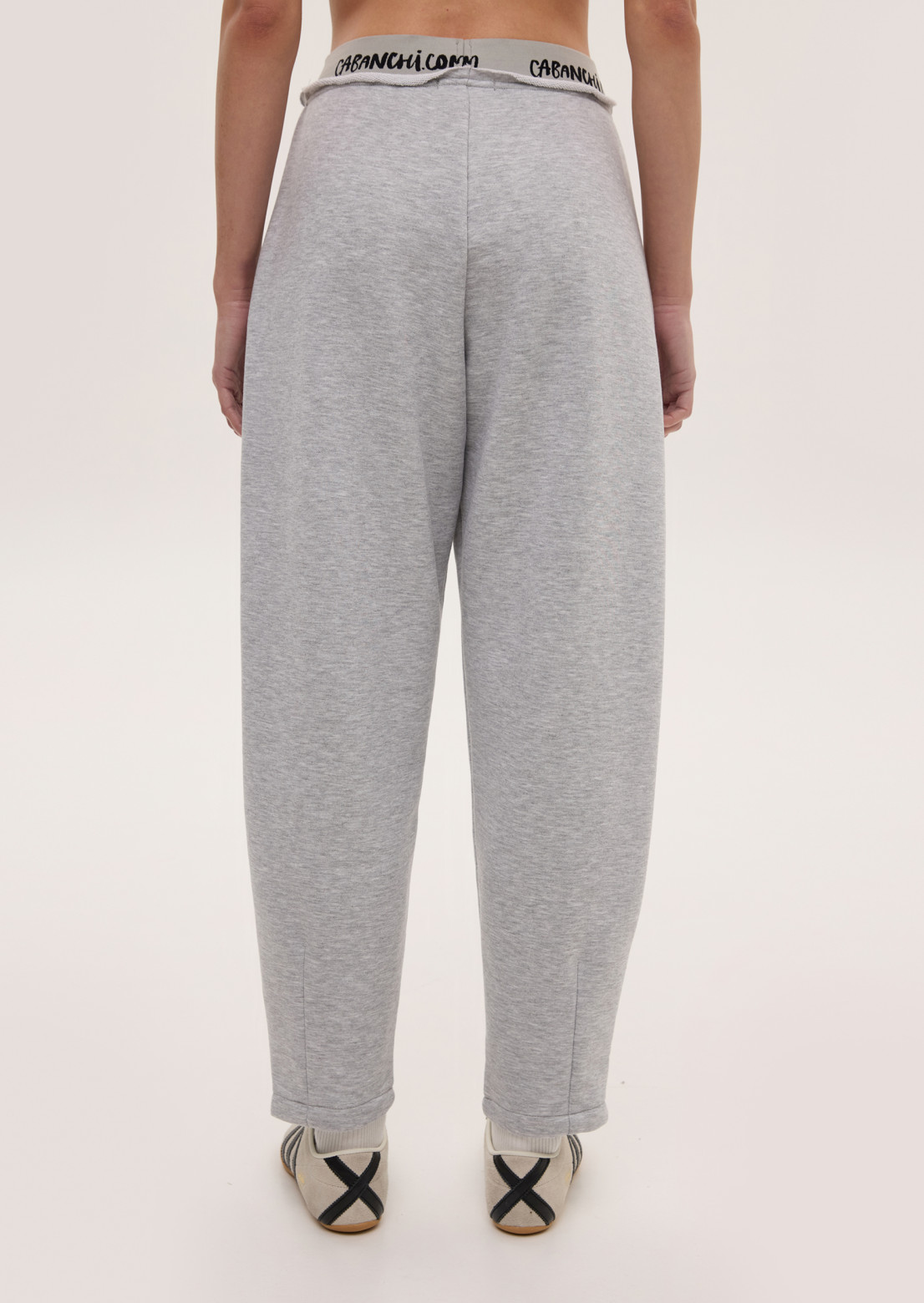 Жіночі штани тринитка з защипами та брендованою гумкою кольору сірий меланж від CABANCHI