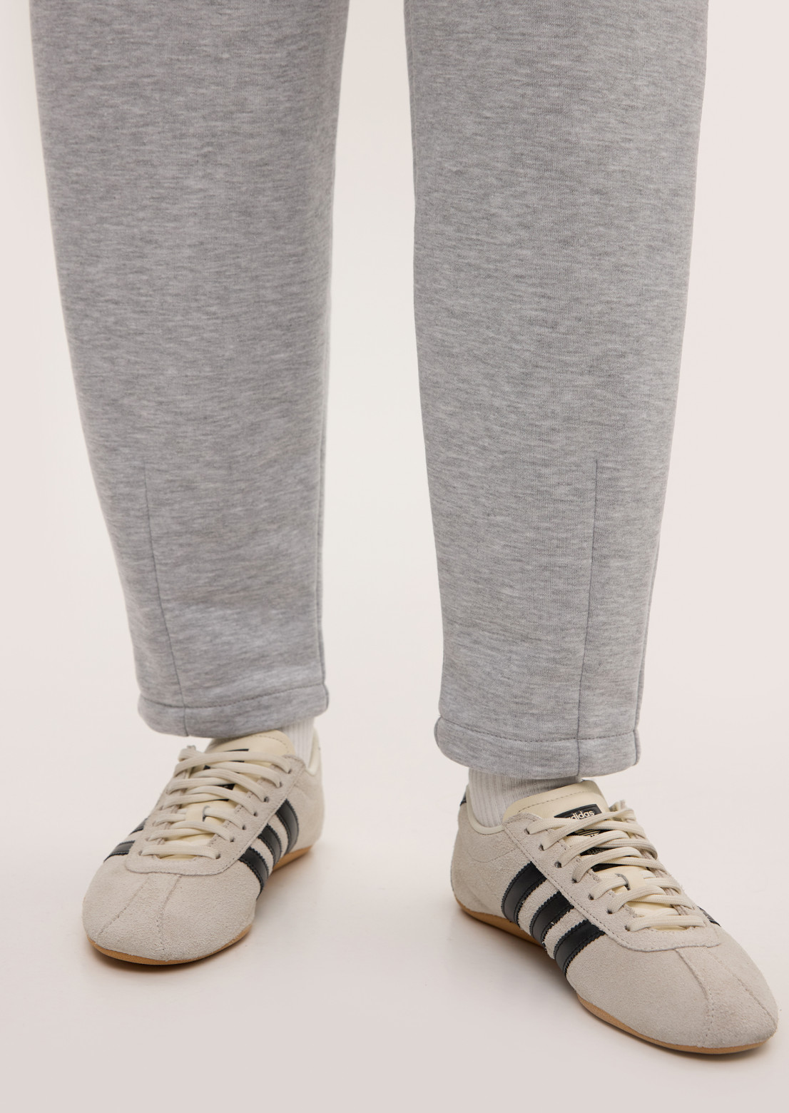Штани тринитка з защипами та брендованою гумкою сірий меланж